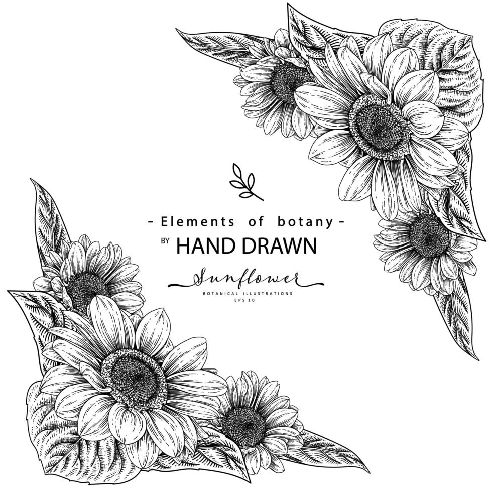 Hand Drawn Sunflower, Free Vector Engraving Hand Drawn Sunflower Border With Copy Space, Sunflower seed and flower vector drawing set.. Sunflower seed and flower vector drawing set. Great for oil packaging design, label, banner, poster sunflower stock illustrations Go over the drawing in ink The design is subtle and tasteful, but still visible. 24,682 sunflower clip art images on gograph.